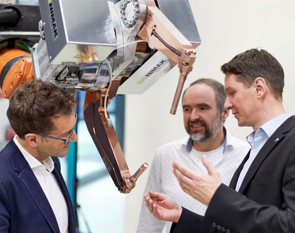 Il design compatto dell'innovativa unità motore/riduttore – unitamente all’alta densità di coppia, rigidezza e dinamica – ha permesso a NIMAK di progettare una pistola di saldatura completamente nuova: la galaxy®GUN che, oltre a migliorare sensibilmente la produttività dei processi di saldatura, consente di saldare nuovi e diversi materiali, perchè le forze vengono generate in modo rapido e dinamico.